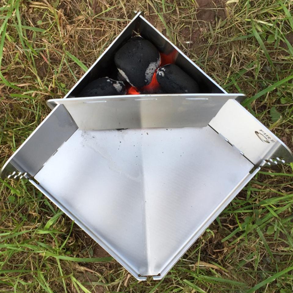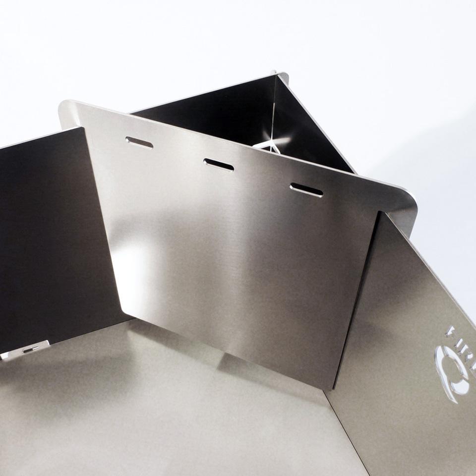 Dieses Anzündblech für den „FireQ“ wird einfach in die beiden Seitenteile eingehängt und bildet so einen dreieckigen Anzündkamin.